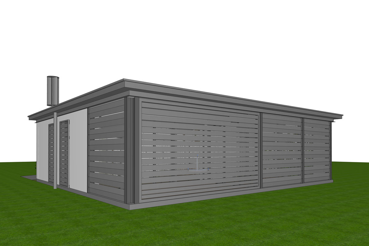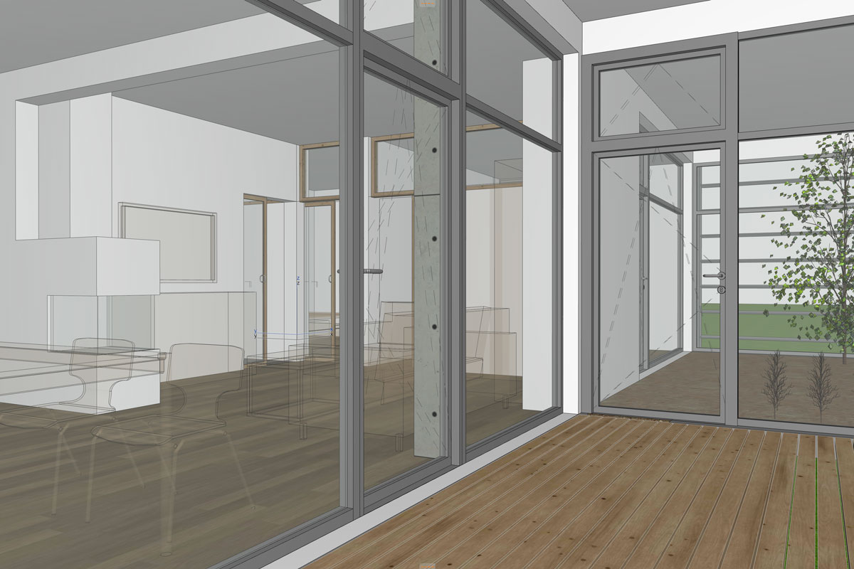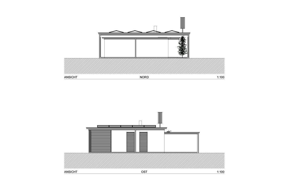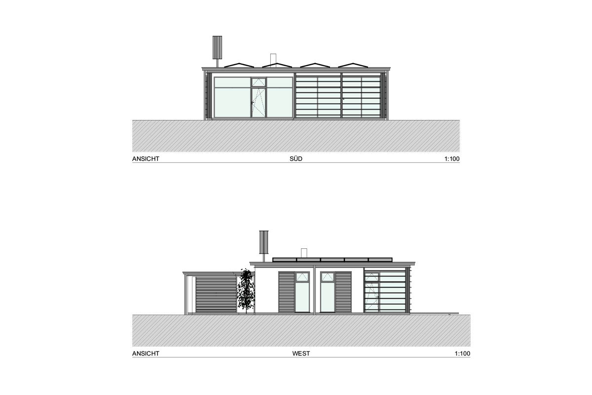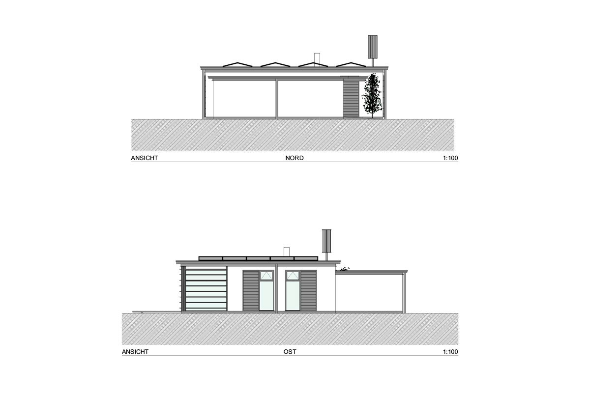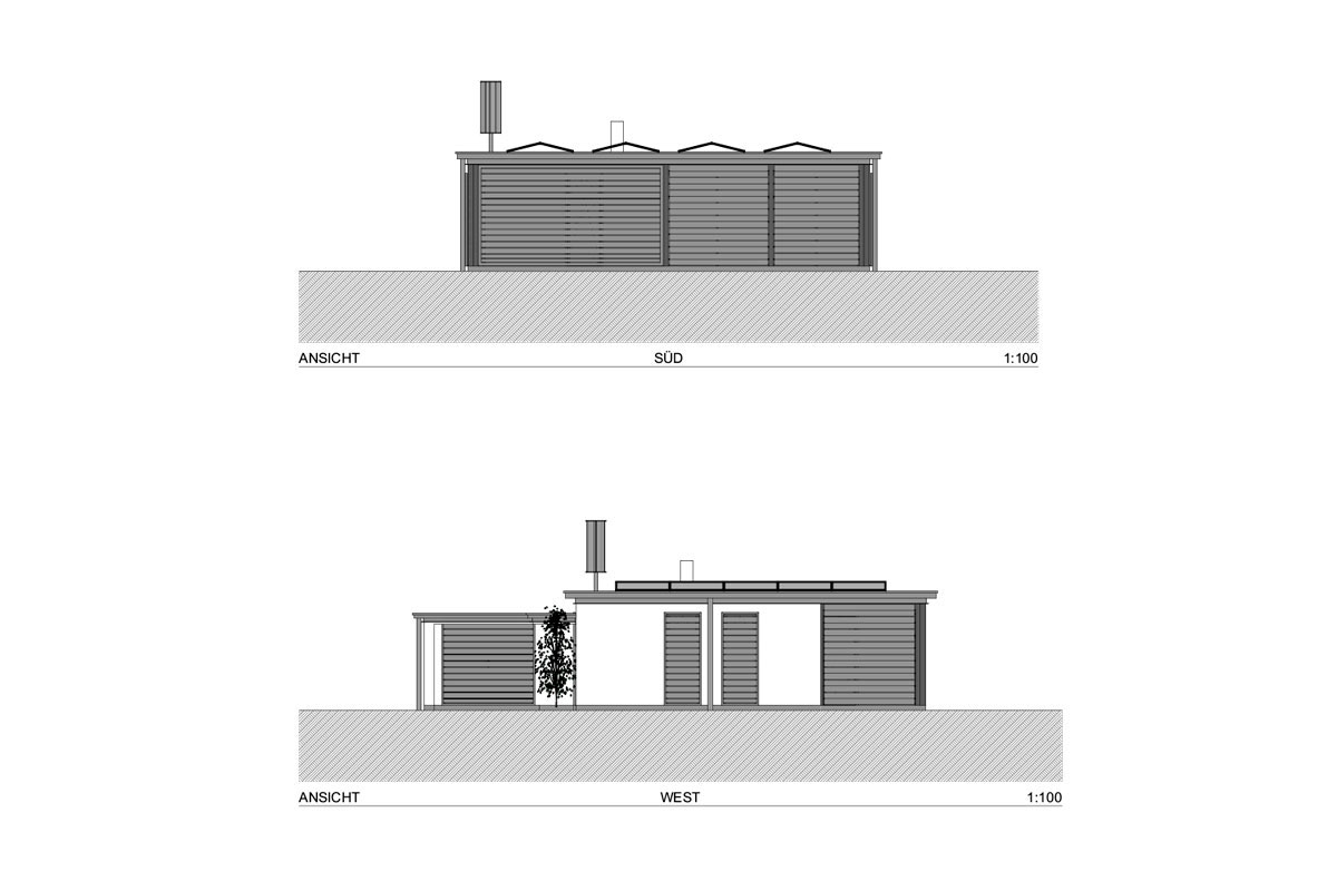 - Kompakte Gebäudehülle aus unverleimtem Vollholz und mineralischer Dämmung